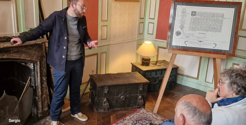 Nous entrons ensuite dans les salons de réception. Marc nous explique le négoce d’antan, la vie des marins qui embarquaient pour des traversées de plusieurs années vers l’Inde, l’Afrique, l’Amérique du Sud, Terre-Neuve, et l’aventure des Corsaires et de leurs lettres de marque qui les autorisaient, avec un navire civil armé, à attaquer les navires ennemis en tant de guerre, aussi appelées « guerres de course ».