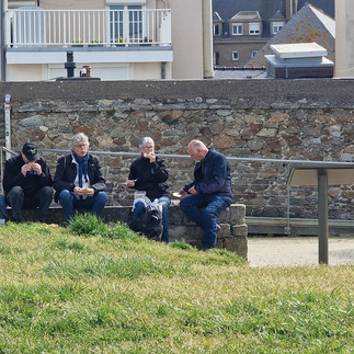 Après avoir passé la Poterne aux Normands, nous atteignons les remparts que nous longeons. Marc nous explique comment les fortifications ont été construites dans la baie, par Vauban notamment, pour protéger la ville des nombreuses velléités anglaises !