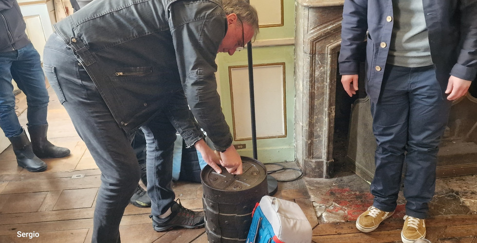 Nous découvrons ensuite, accolé aux salons, un escalier dérobé extrêmement réduit, menant à l’étage à une pièce secrète de négociation… puis descendons vers les caves (situées en dessous du niveau de la mer) où étaient gardés les métaux précieux (or & argent), les sous-sols intermédiaires quant à eux plus secs servaient à entreposer les épices, les colorants, les tissus et porcelaines de la Compagnie des Indes.