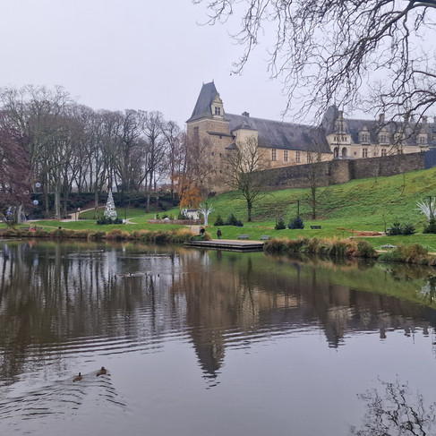 Il est temps de repartir afin de ne pas rentrer de nuit et dans le brouillard. Nous quittons le centre de Châteaubriant en passant devant une patinoire extérieure ; ça sent vraiment Noël !!