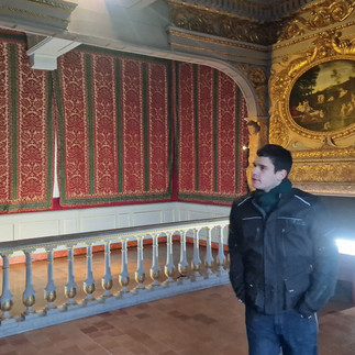 Nous découvrons plus loin, dans une autre aile du Château, une pièce dans laquelle l'histoire de ce lieu nous est contée... Les visiteurs sont attentifs !