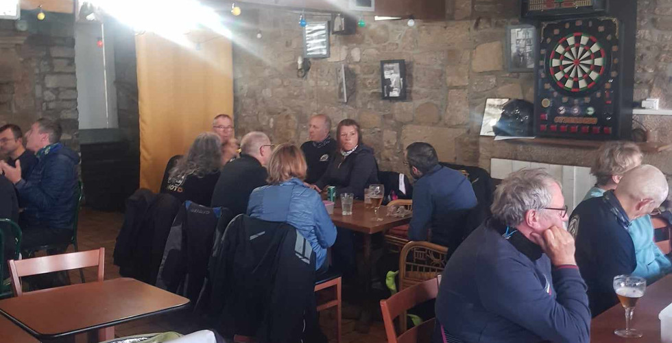 Il est temps de reprendre la route, direction Moncontour. Nous prenons un petit grain, histoire de nous rappeler que nous sommes bien en automne… Un petit détour pour faire quelques pleins d’essence et nous rejoignons la cité médiévale. Nous avons prévu de pique-niquer, mais au vu de la météo notre ami Dom, toujours prévoyant, a un plan B, B comme Bien au sec, et c’est un bar qui nous accueille au cœur de Moncontour, le Penthièvre. Là aussi un accueil bien sympa !