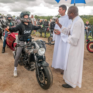 Enormément de monde sur le site, les motards arrivant en masse tout au long de la matinée pour assister à la messe, participer à la bénédiction, puis à la balade l'après-midi.
