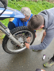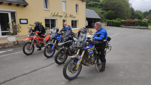 Jeudi petit déjeuner, puis briefing avant un départ vers le Menez Brez (carte n°1 sens anti horaire) avant de mettre cap au sud jusque Saint Nicolas du Pélem. Une trace de 178 km composé de chemin roulant (chemin de tracteur) petit sentier, bourbier etc... et un peu de route en liaison. Le soir petit apéro, puis BBQ préparé par notre hôte, un bon moment convivial où nous avons si peu parlé de moto...