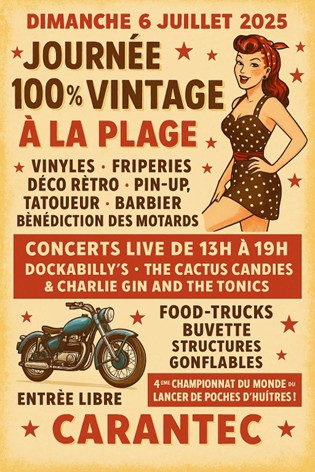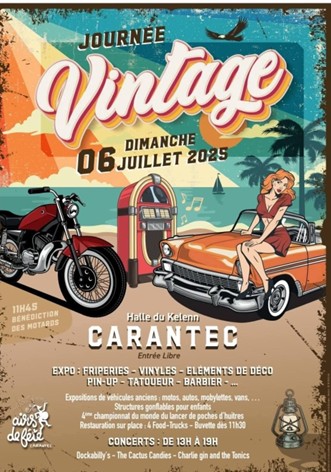 Rendez-vous à Carantec (29), Halte du Kelenn. Expo : Friperie / Vinyles / Déco rétro / Pin-Up / Tatoueur / Barbier. Bénédiction des Motards à 11h45 - Concerts de 13h00 à 19h00
