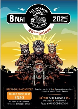 Jeudi 08 mai : Balade pour Enzo par « Les Motards de Brocéliande ».