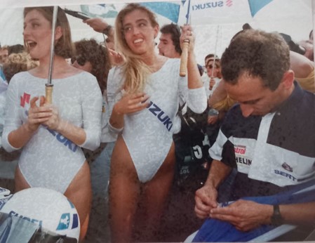 Une autre époque sur la grille de départ ! L’équipe du SERT concentrée malgré des Grid Girls en tenue légère…