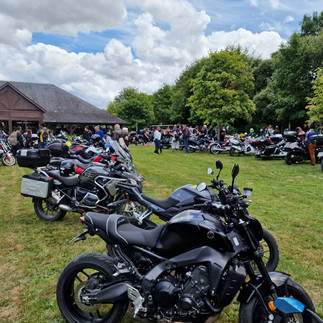Après avoir déjeuner en compagnie d'aérostiers (qui nous ont appris plein de choses sur leur passion) et éviter une courte averse, le soleil revient et il est temps pour notre petit groupe d'aller s'inscrire à la Balade. Une participation de 5,00€ est demandée aux motards présents. Environ 300 motos présentes au départ, et nous retrouvons quelques connaissances sur place !